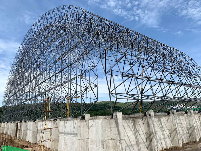 (2)网架加工前应对现场尺寸进行复测,确认无误后方可进行加工、安装;网架制作、运输、安装应遵守《空间网格结构技术规程》JGJ7-2010、《钢网架蛟河螺栓球节点》JG/T 10-2009、《钢网架蛟河螺栓球节点用高强度螺栓》 GB/T 16939-2016、《蛟河钢结构蛟河工程蛟河施工规范》 GB50755-2012、《蛟河钢结构蛟河工程施工质量验收标准》 GB50205-2020。